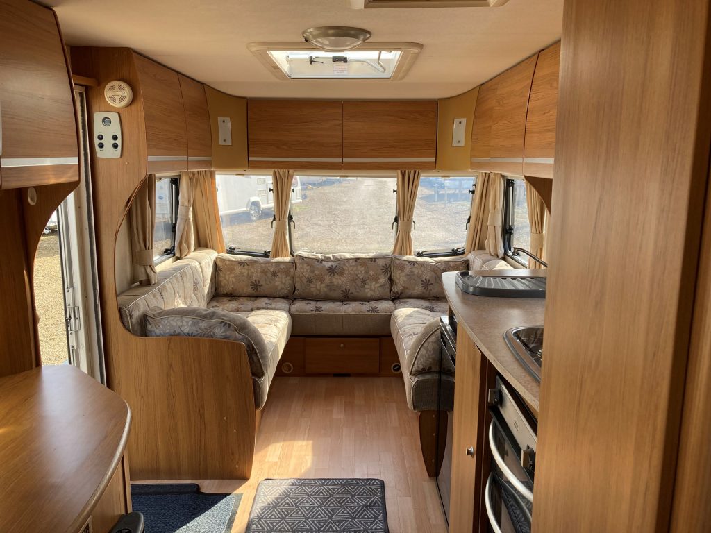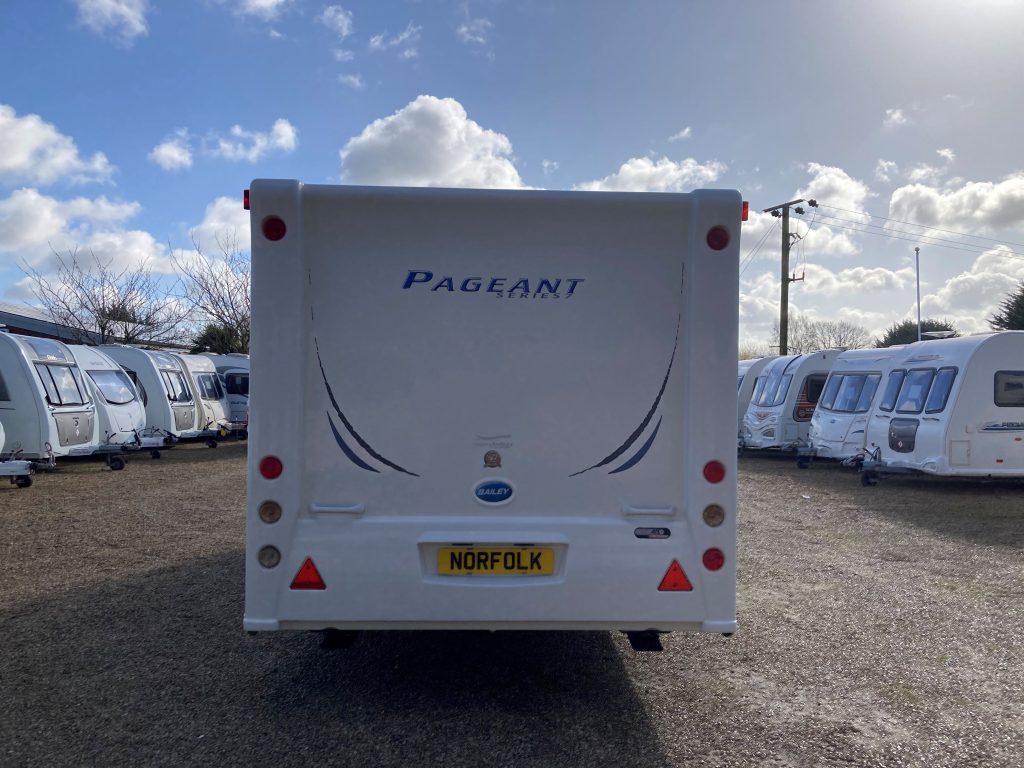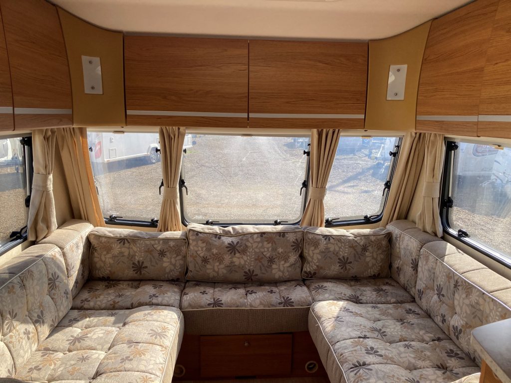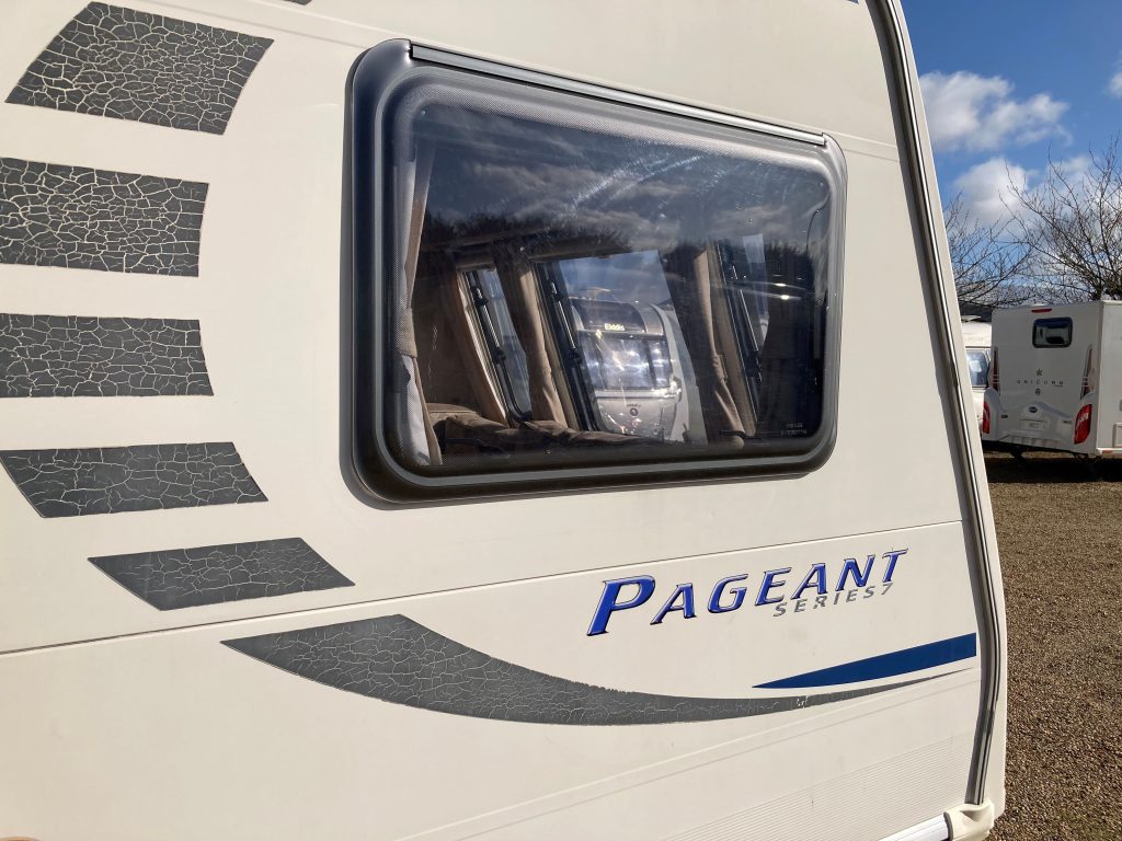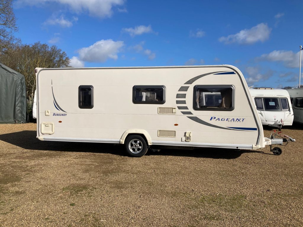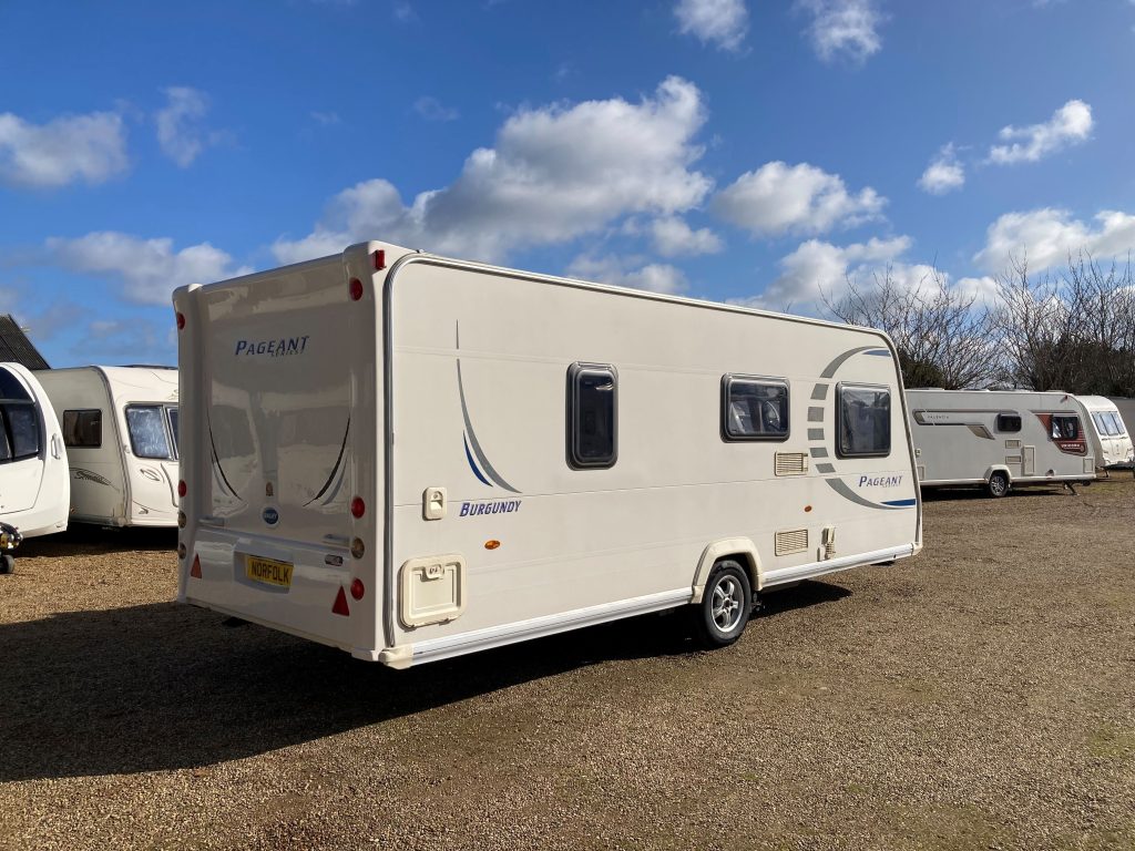 Our well-appointed 4 berth Fixed Bed, U-Shaped Lounge Bailey Pageant Burgundy Caravan (Band: Silver), with End Side Washroom, offers good levels of accommodation, space & comfort!