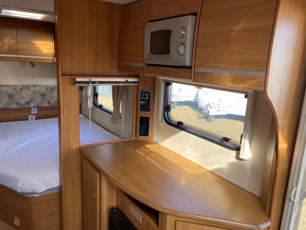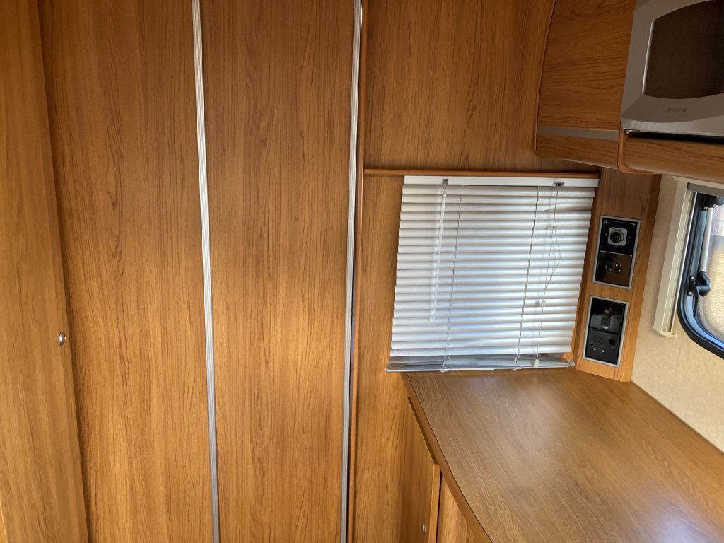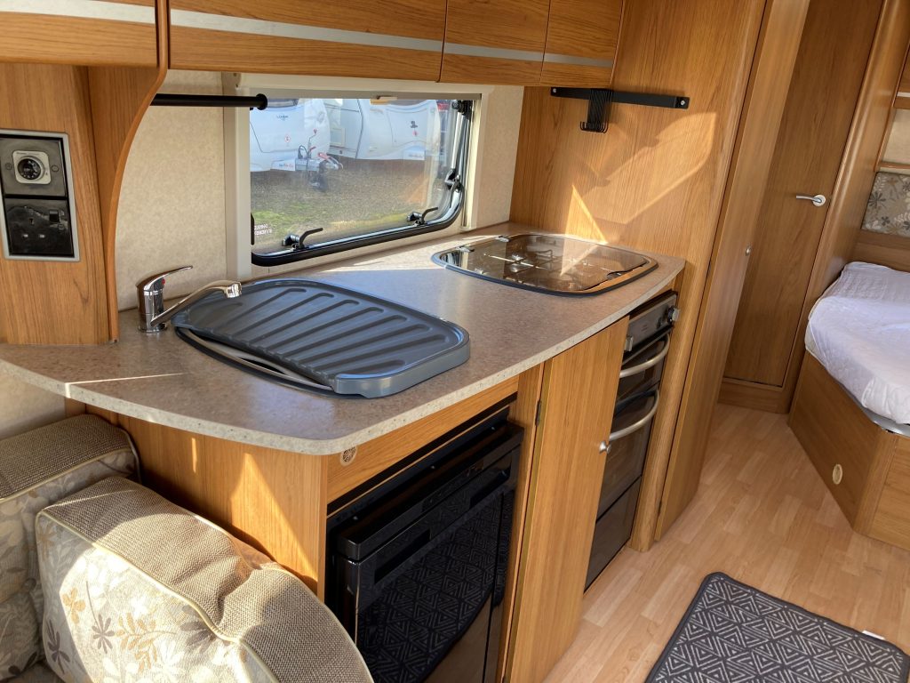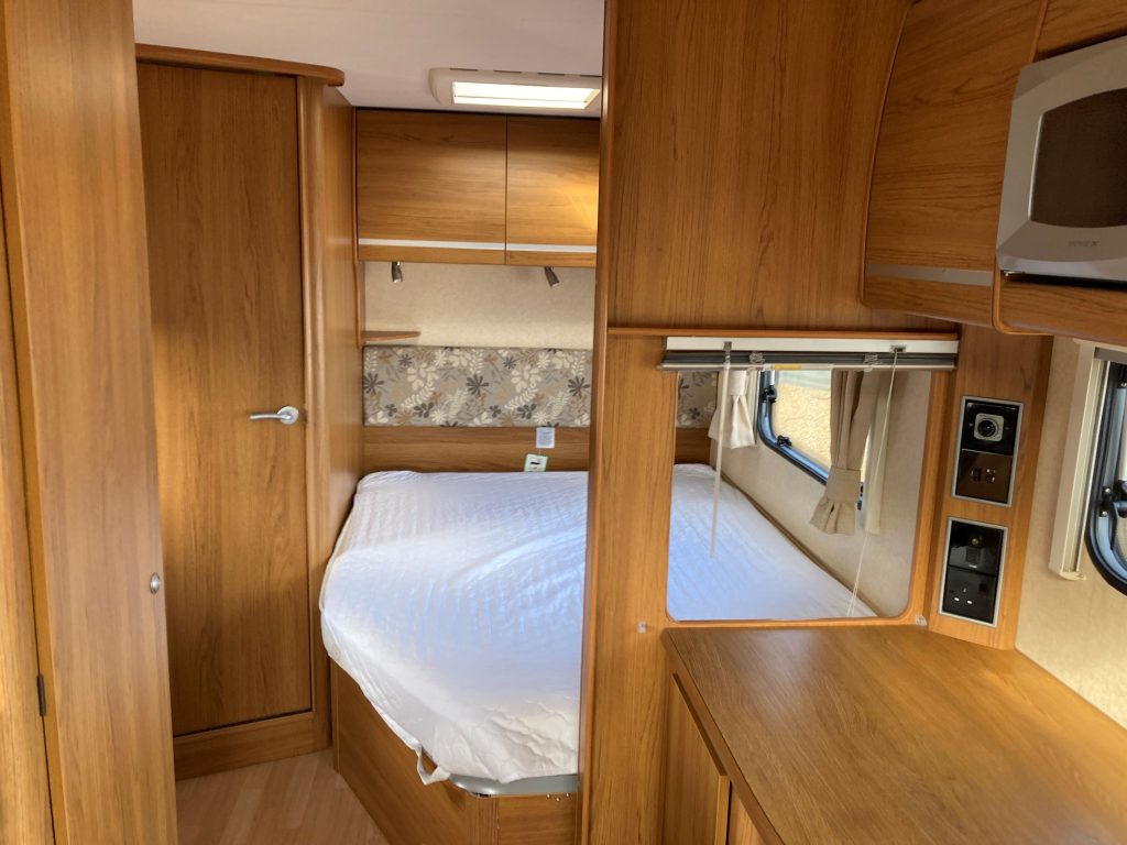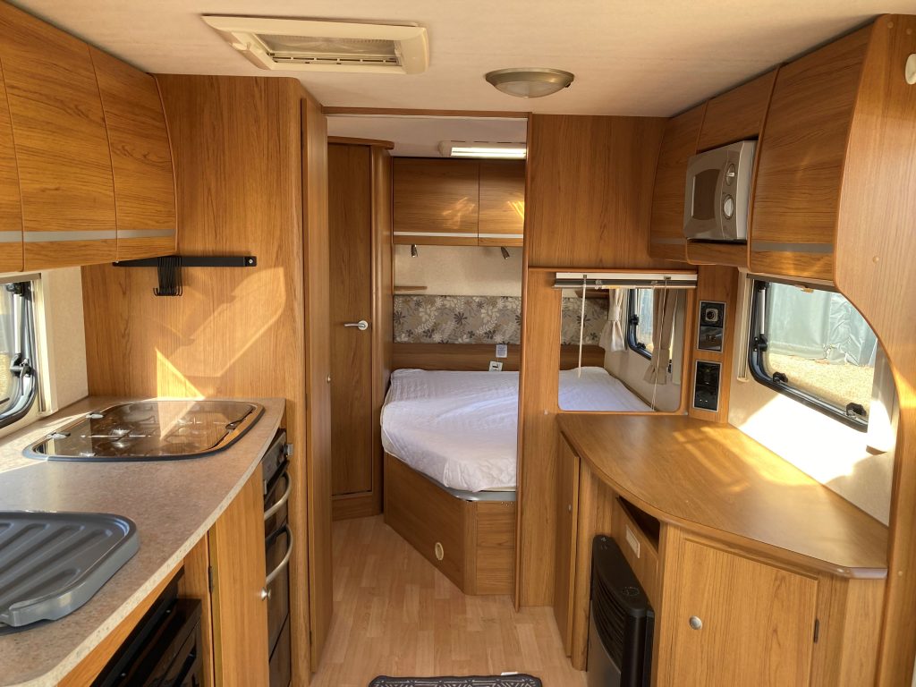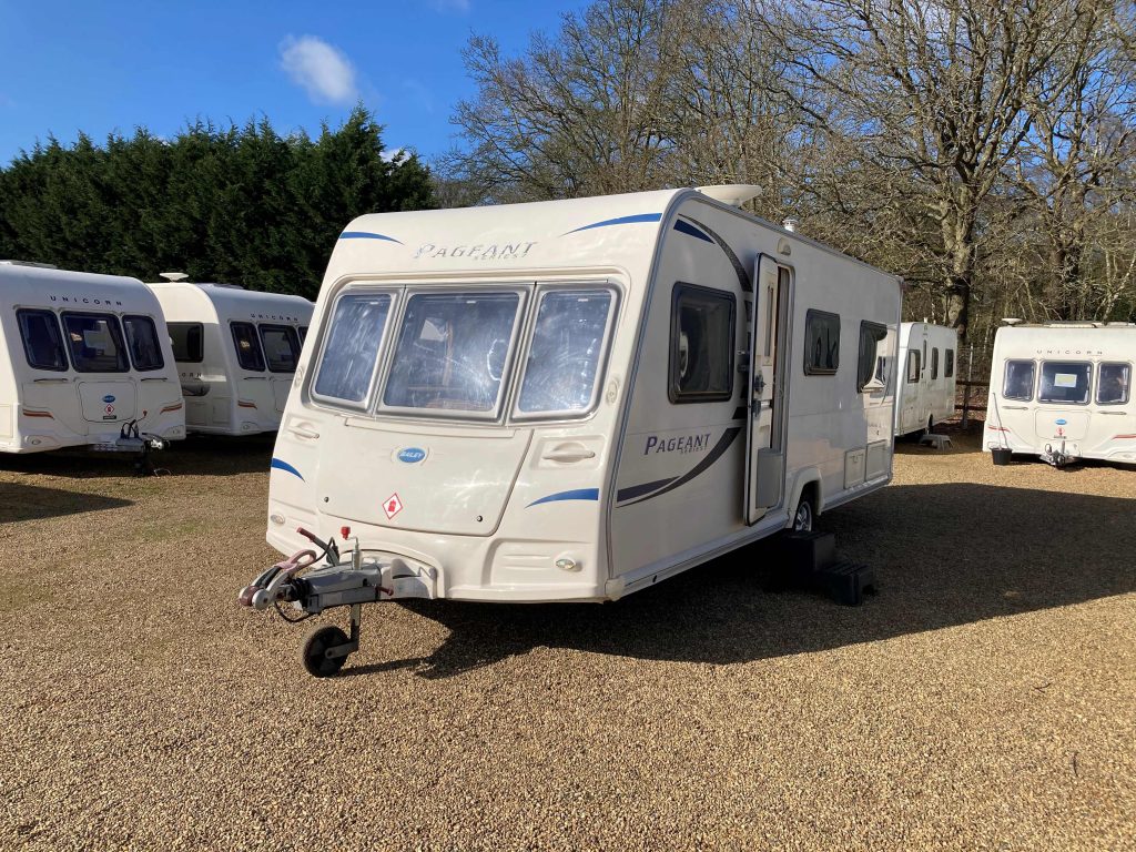 Our well-appointed 4 berth Fixed Bed, U-Shaped Lounge Bailey Pageant Burgundy Caravan (Band: Silver), with End Side Washroom, offers good levels of accommodation, space & comfort!