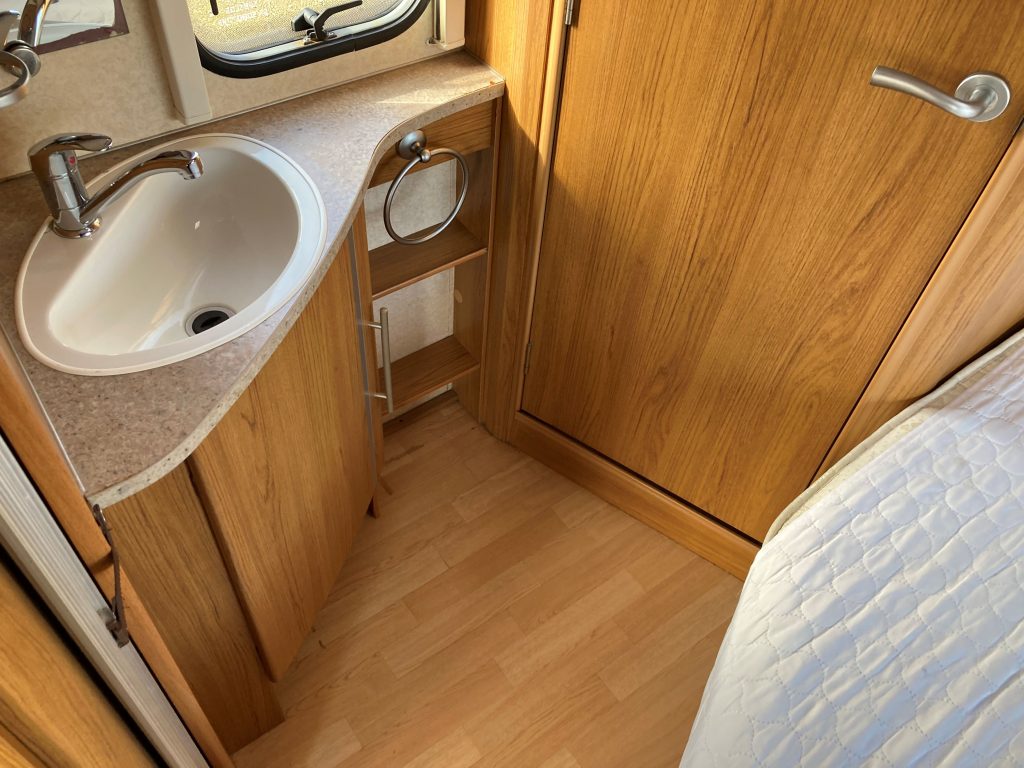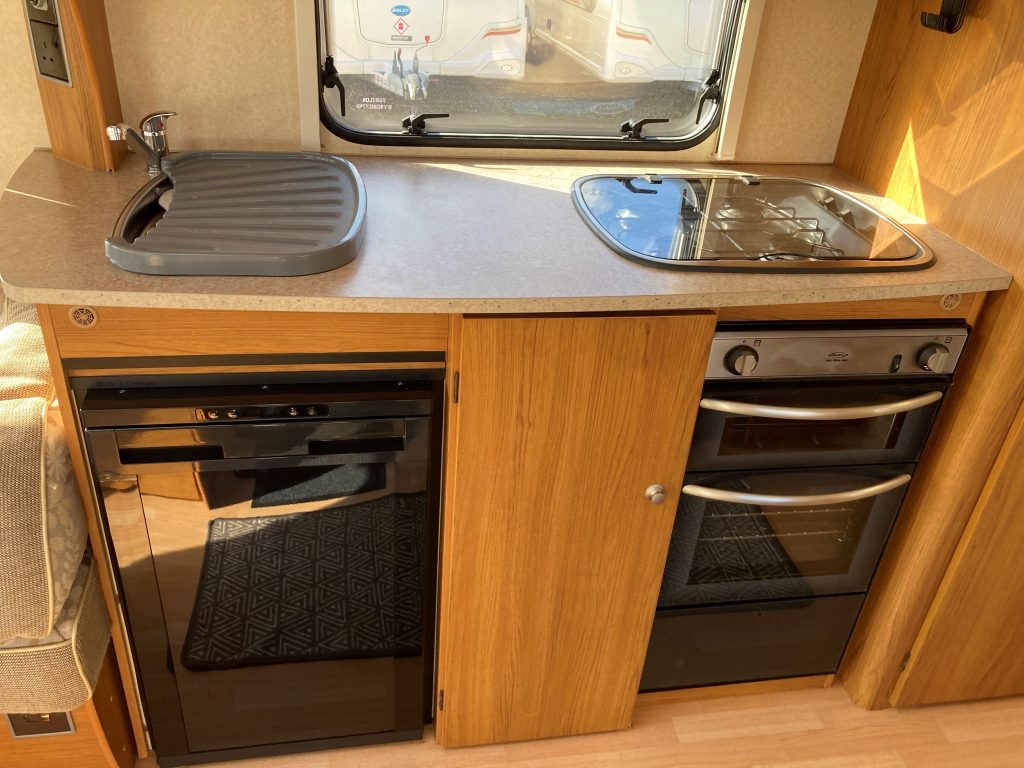 Single Axle, U-Shaped Lounge, End Bedroom, Fixed Bed, Corner End Washroom, Shower, Sink, Electric Flush Cassette Toilet, Electric & Gas Heating + Hot Water, Battery Charger, Gas Hob, Grill, Oven, Fridge/Freezer, Microwave, Extractor Fan, Laminate Flooring, TV Directional Aerial, Heki-Rooflight, Stereo System, Blinds, Fly Screens, External 240v, Alloy Wheels, Spare Wheel, Hitch Head Stabiliser & Caravan Motor Mover.